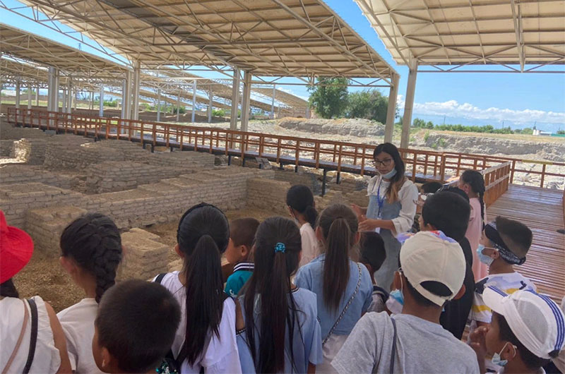«Ежелгі Тараз ескерткіштері» мемлекеттік тарихи-мәдени қорық-музейінің қызметкерлері «Көне Тараз» археологиялық саябағында №59 мектебінің жазғы демалыс лагерінде жүрген бастауыш сынып оқушыларына экскурсия жүргізді. Оқушылар экскурсия барысында тарихи – мәдени мұраларымызбен, ежелгі қала, үлкен руханият орталығы болған Тараз шаһарының тарихымен танысты. Жазғы демалыста өскелең ұрпақтың осындай тарихи нысандарда жүруі болашаққа деген сенімімізді арттырады.
