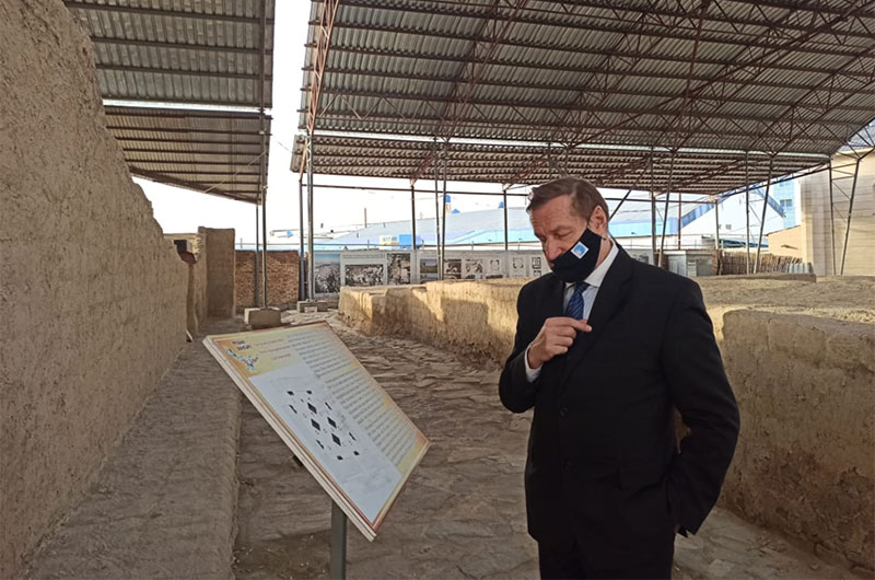 В рамках рабочего визита в г. Тараз  руководитель Представительства Россотрудничества в Казахстане, директор Российского центра науки и культуры в г. Нур-Султане Алексей Анатольевич Коропченко посетил историко-культурные объекты Государственного историко-культурного заповедника-музея «Памятники древнего Тараза». В ходе экскурсии гость  был ознакомлен с памятниками -  шедеврами средневекового зодчества периода Караханидов – мавзолеями Карахана и Айша биби, он посетил этно-культурный комплекс Тектурмас, восточную баню Кали Юнуса, средневековую раннеисламскую мечеть. Алексей Анатольевич, впервые находясь в нашем городе отметил, что Тараз обладает колоссальным историко-культурным многовековым наследием и богатым туристическим потенциалом.