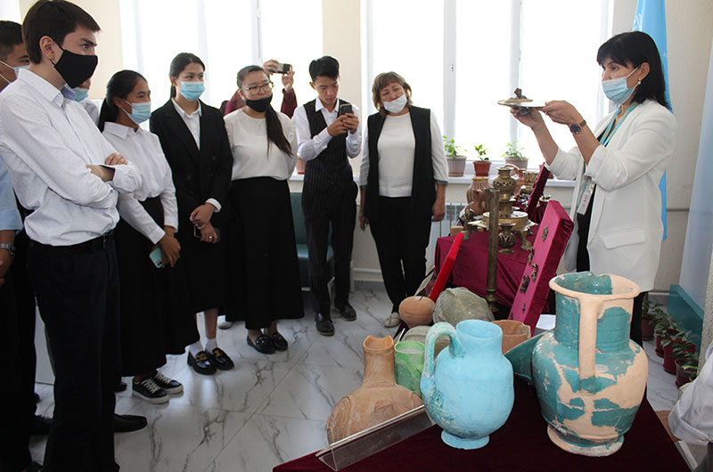 Сонымен қатар көрмені таныстыру барысында тарихи-мәдени мұраларымызды насихаттау мақсатында көрмеге ортағасырлық қыш бұйымдары, қола шырағдан бөліктері, әртүрлі кезеңге жататын монеталар қойылды. Қорық-музейдің қор қызметкерлері әрбір жәдігерлердің ғылыми сипаттамасымен таныстырып, ежелгі Тараз шаһарының тарихынан сыр шертті.