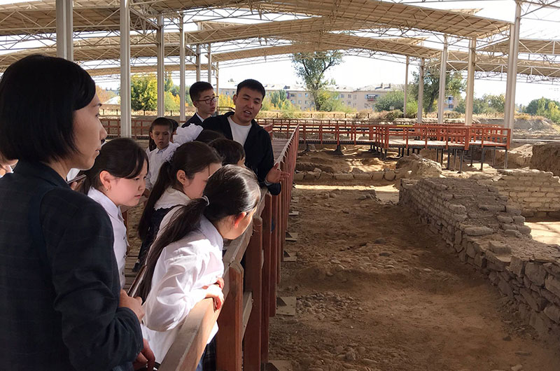 Қазақстан Республикасының "Ежелгі Тараз" ескерткіштері мемлекеттік тарихи-мәдени музей-қорығына қарасты рухани құндылықтардың ордасы болған “Көне Тараз” археологиялық саябағында қалалық №12 Керімбай атындағы мектеп-гимназиясының оқушыларына экскурсия жүргізілді. Көзделген басты мақсат өскелең ұрпаққа бабаларымыздың даналығы болған асыл мұрамызды насихаттау, сондай-ақ үлкен руханият орталығының біріне айналған Тараз шаһарымыздың тарихымен таныстыру болатын. Экскурсия барысында оқушылар қызығушылық білдіріп, айтылған мәліметтерді сүйсіне тыңдады.