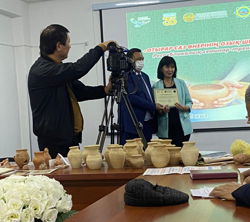 Ел Тәуелсіздігінің 30 жылдығына орай бүгін Отырар мемлекеттік қорық-музейінде «Отырар саз өнерінің озық шыңы» тақырыбында семинар-тренинг өткізілді. Осыған орай аталған шараға «Ежелгі Тараз ескерткіштері» тарихи-мәдени музей – қорығының қызметкерлері тәжірбие алмасу мақсатында қатысты. Семинар-тренингте жалпы тақырыптар, ортағасырдағы керамика өңдірісінің дамуы, керамикалық жәдігерлерді қайта қалпына келтірудің бүгінгі тәсілдері және осы қолданбалы өнердің жалғасы жөнінде қамтылды. «Отырар саз өнерінің озық шыңы» атты семинарға қатысушы музей-қорық қызметкерлері Оспанова Алия, Алимханова Ұлболсын Сертификаттармен марапатталды.