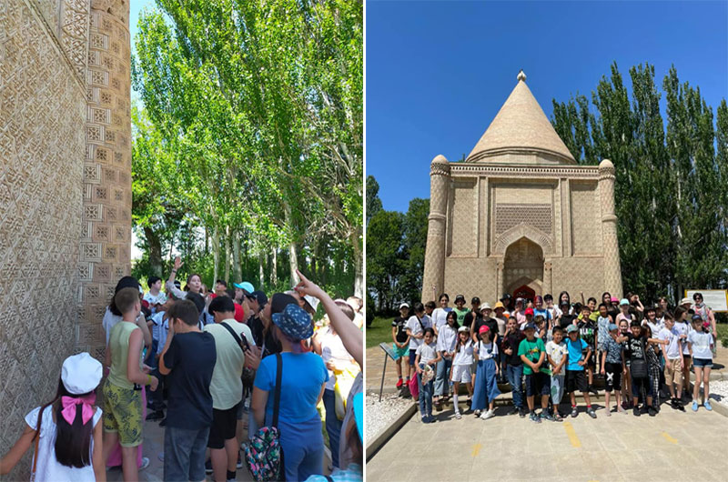 Балалардың жазғы демалысын мазмұнды ұйымдастыру мақсатында ҚР Мәдениет және спорт министрлігі Мәдениет комитетінің «Ежелгі Тараз ескерткіштері» мемлекеттік тарихи-мәдени музей-қорығының қызметкерлері қаладағы 7-ші және №13-ші мектептер жанындағы лагерьге келушілерге ұлттық тарихымыздың құнды жәдігерлерінің ерекше бір тармағы, сәулет өнерінің үздік нұсқасы «Айша бибі», «Бабаджа хатун» кесенелері, Тектұрмас этно-тарихи кешені, «Қарахан» кесенесі және «Көне Тараз» археологиялық ашық аспан астындағы саябағында танымдық экскурсия өткізді.