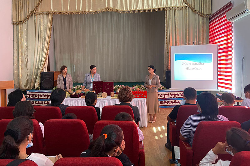 Қазақстан Республикасының Тәуелсіздігінің 30 жылдығына тұспа-тұс келген Жамбыл Жабаевтің 175 жылдық мерейтойына байланысты ҚР Мәдениет және спорт министрлігіне қарасты «Ежелгі Тараз ескерткіштері» тарихи-мәдени қорық-музейінің қызметкерлерінің «Жамбыл Жабаев- Ұлы дала елінің жыршысы» тақырыбында Нұрғиса Тілендиев атындағы облыстық мектеп-интернатында жылжымалы көрме ұйымдастырды. Көрме барысында археологиялық қазба жұмыстары нәтижесінде табылған құнды жәдігерлерден көрме жасақталып, Жамбыл Жабаевтің өмірбаянынан құралған презентация мен фотолары ұсынылды.