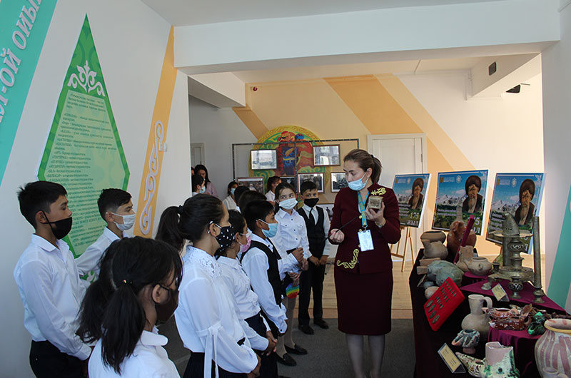 Сонымен қатар көрмеде бүкіл қазаққа аты мəшһүр ұлы ақын Жамбыл атамыз дүниеге келген тау бөктерінде орналасқан Көне Тараз қалашығынан табылған орта ғасырлық тарихи-мәдени жәдігерлер білім- алушылардың назарларына ұсынылды. Сан ғасырлар тарихтың құпиясын бойына жиып жатқан Тараз қаласы – өткен мен бүгінгі күннің арасын жалғастырушы, тарихтың даму барысында өзіндік ерекшілігі бар көне қалалардың бірі екені мәлім. Көненің көзі болып, көкірегі ояу ұрпағына жеткен экспонаттарды тамашалаған жас жеткіншетер мәдени мұраларымызға қызығушылықтарын білдірді. Тараздың асты сырлы тарихқа тұнып тұр. Тарихымыздың терең қойнауына үңілетін болсақ, қасиетті Тараз өңірі тағы да өзінің қатпар-қатпар қойнауынан бізге белгісіз талай тарихтың сырын ашары ақиқат.