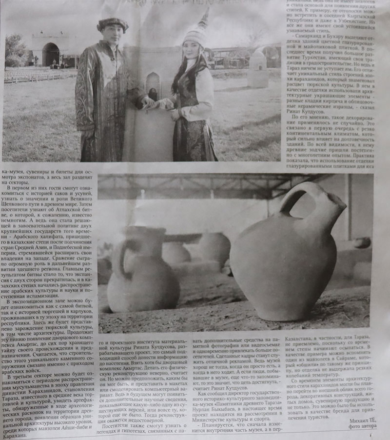 Облыстық "Знамя труда" газетінің жаңалықтар беттерінде "Новый взгляд на старину" атты тақырыпта мақала жарыққа шықты.(29 қаңтар 2022 жыл №12(19073)).