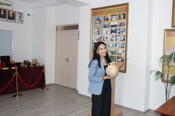 Студенттер назарына археологиялық қазба жұмыстары нәтижесінде табылған жәдігерлер ұсынылды. Атап айтсақ, әр кезеңге жататын мәдени қабаттан табылған қыш бұйымдары мен металдан жасалған бұйымдардың мерзімін, жасалу техникасы мен пайдалану мақсатын түсіндірді.