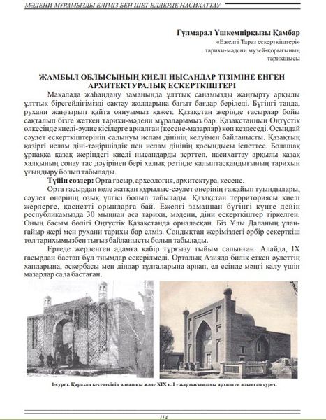 ҚР Мәдениет және спорт министрлігіне қарасты Отырар мемлекеттік археологиялық музей-қорығында 2022 жылдың 17-18 қарашасында «Археологиялық ескерткіштерді зерттеу, сақтау және қайта жаңғырту мәселелері» тақырыбындағы халықаралық ғылыми-тәжірибелік конференция өткен болатын. Аталмыш конференцияның жинағы ағымдағы жылдың қаңтар айында жарық көрді. Жинаққа Қазақстан Республикасының Мәдениет және спорт министірлігіне қарасты «Ежелгі Тараз ескерткіштері» мемлекеттік тарихи-мәдени музей-қорығының қызметкерлері Г. Ү. Қамбардың «Жамбыл облысының киелі нысандар тізіміне енген архитектуралық ескерткіштері» тақырыбында және Ұ. Ш. Шаизханның «Мәдени ескерткіштер тарихтан сыр шертеді» тақырыбында мақалалары жарияланды.