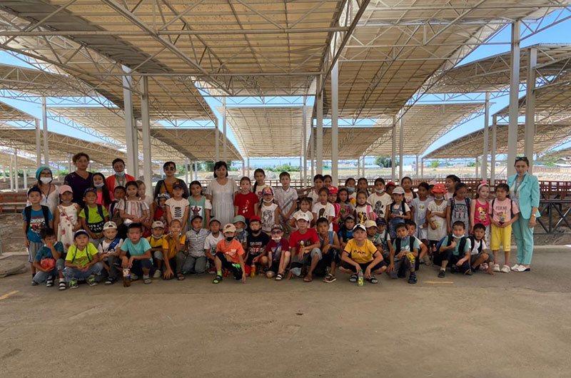 Өмірбек Жолдасбеков атындағы қалалық №50 орта мектептің жазғы демалыс лагерінде жүрген бастауыш оқушыларына "Көне Тараз" археологиялық саябағында экскурсия жүргізіліп, мәдени -тарихи мұраларымыз жайлы викториналық сұрақтар қойылып, балалардың тарихқа деген ынта-ықылыастарын байқадық. Жазғы демалыста өскелең ұрпақтың осындай тарихи нысандарда жүруі болашаққа деген сенімімізді арттырады.