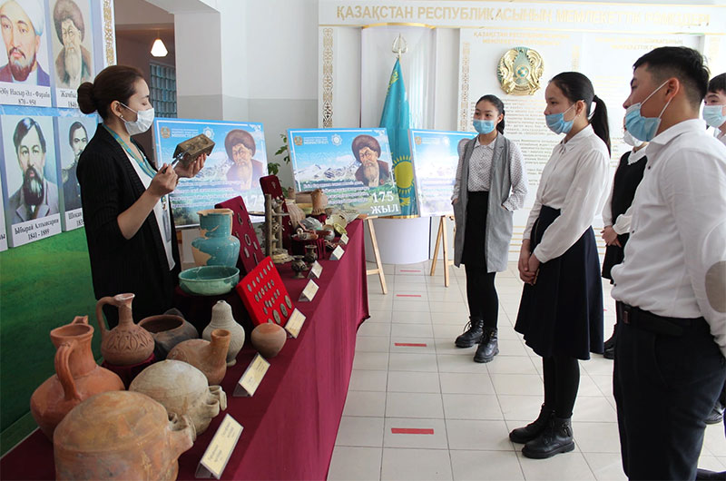 Қазақстан Республикасының Мәдениет және спорт министрлігінің «Ежелгі Тараз ескерткіштері» Мемлекеттік тарихи-мәдени қорық-музейі Жамбыл облысы, Жамбыл ауданы, Айша бибі атындағы орта мектепте «Көненің көзі ұрпаққа аманат» атты тақырыпта жылжымалы көрме ұйымдастырды. Киелі Тараз қаласының орнынан табылған ортағасырлық құнды да бірегей жәдігерлерден жасақталған жылжымалы көрмені мекеме қызметкері З. Балтабаева таныстырды.
