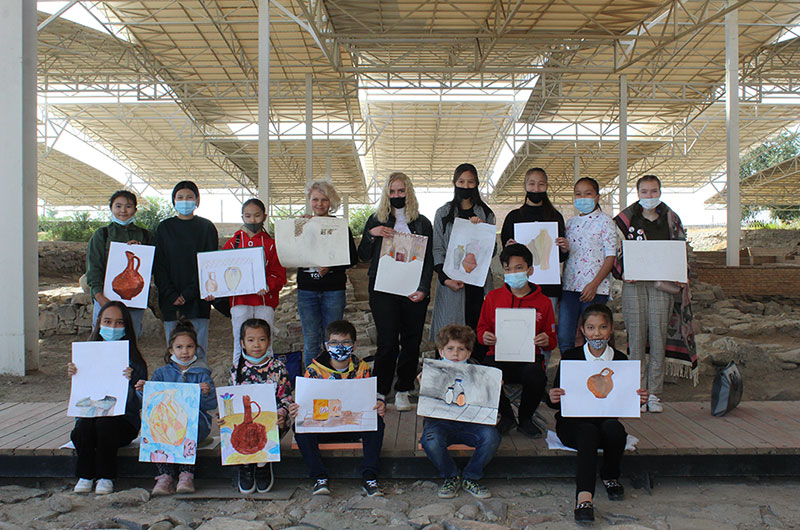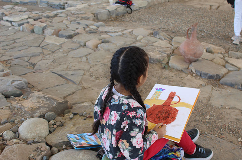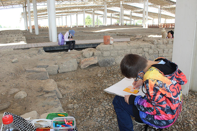 Балаларға «Көне Тараз» ашық аспан астындағы археологиялық саябақтың мысалында ортағасырлық Тараз қаласының тарихымен таныстырды. Сабақ барысында балалар археологиялық парктің құрылу тарихымен танысты.Еске сала кетсек 2011 жылы басталған археологиялық қазба жұмыстары қаланың мыңжылдық тарихы барын дәлелтейтін құнды жәдігерлерлермен толыққан болатын. Соның ішінде VI-XII ғасырларға жататын шамамен 4 мыңдай артефакт және де мешіт, медресе, ортағасырлық монша, керуен сарайлар, көне Талас өзені сағасының жағасы, тұрғын үйлердің іргетастары табылды. Осындай тарихи құндылықтарды өз көздерімен тамашалаған оқушылар үлкен әсер ала отырып, көне қалашықтан табылған жәдігерлердің суретін салуға кірісті. Іс-шара соңында қатысушы балалар мен ұстаздар ыстық ықыластарын білдіре отырып, алғыстарын айтты.