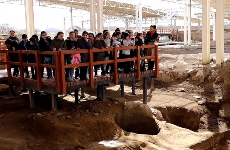 Жас ұрпақты өлке тарихымен тереңірек таныстыра отырып, ұлттық құндылықтарымыз бен рухани қазынамызды насихаттау мақсатында "Ежелгі Тараз ескерткіштері" тарихи-мәдени қорық-музейінің қызметкерлері Жамбыл облысы, Қызыл жұлдыз ауылындағы Намазбай Ақшабаев атындағы орта мектебінің білім алушыларына музей сабағын өткізді. Музей қызметкерлері «Көне Тараз» археологиялық саябағында ежелгі қала, үлкен руханият орталығы болған Тараз шаһарының тарихымен және археологиялық қазба жұмыстары нәтижесінде табылған бірегей құнды экспонаттар көрсетіп, сипаттамларына тоқталып, таныстырды.Оқушылар Тараздың ортағасырлық қалалық мәдениеттің эталоны ретіндегі даму кезеңдерімен танысты. Олардың арасында керуен-сарайлар, "хамам" моншасы, медреселер,сәулет ерекшеліктері мен қолөнердің дамуы ерекше қызығушылық тудырды.