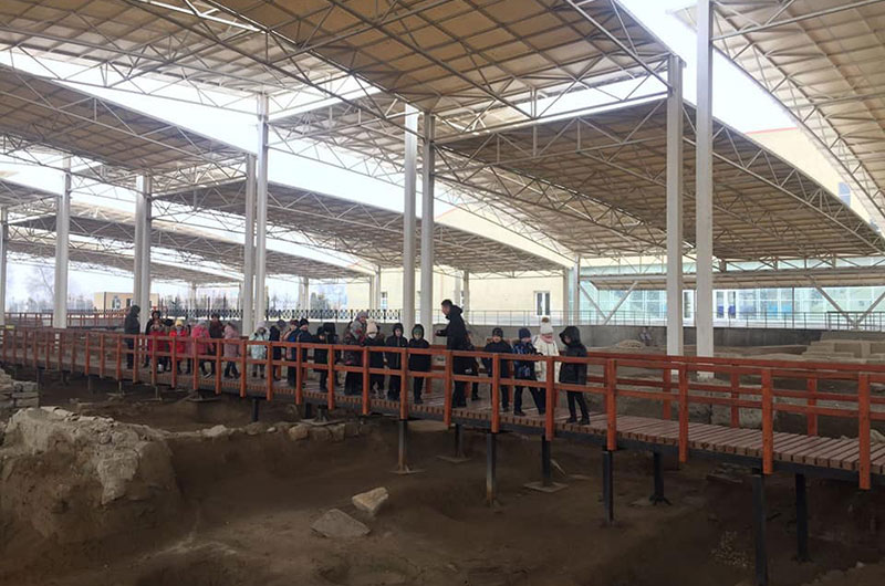 Ел Тәуелсіздігінің 30 жылдығы аясында «Ежелгі Тараз ескерткіштері» тарихи-мәдени қорық-музейінің қызметкерлері «Көне Тараз» археологиялық паркінде №8 мектеп-гимназиясына музей сабағын өткізді. Музей қызметкерлері білім алушыларға тарихи-мәдени мұраларды, ортағасырлық қаласы болған, үлкен руханият орталығының біріне айналған Тараз шаһарының тарихымен және археологиялық қазба жұмыстары нәтижесінде табылған бірегей құнды жәдігерлердің тарихы кеңінен насихатталды. Тақырыптық экскурсия барысында оқушылар қызығушылық білдіріп, айтылған мәліметтерді сүйсіне тыңдады. Музей сабағында музей-қорық қызметкерлері мен оқушылар арасында сұрақтар қойылып, тақырыптық экскурсияның мазмұны ашылды.
