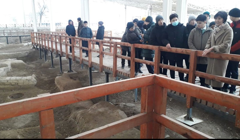 Өскелең ұрпақты өлке тарихымен тереңірек таныстыра отырып, туған жерге деген сүйіспеншіліктерін арттыру, тарихымызға деген қызығушылығын ояту, ұлттық құндылықтарымыз бен рухани қазынамызды насихаттау мақсатында "Ежелгі Тараз ескерткіштері" тарихи-мәдени қорық-музейінің қызметкерлері дарынды ер балаларға арналған мамандандырылған «Білім-инновация» лицей-интернатының білім алушыларына музей сабағын өткізді. Музей қызметкерлері «Көне Тараз» археологиялық саябағында ежелгі қала, үлкен руханият орталығы болған Тараз шаһарының тарихымен және археологиялық қазба жұмыстары нәтижесінде табылған бірегей құнды экспонаттар көрсетіп, сипаттамларына тоқталып, таныстырды.Оқушылар Тараздың ортағасырлық қалалық мәдениеттің эталоны ретіндегі даму кезеңдерімен танысты. Олардың арасында керуен-сарайлар, "хамам" моншасы, медреселер,сәулет ерекшеліктері мен қолөнердің дамуы ерекше қызығушылық тудырды.
