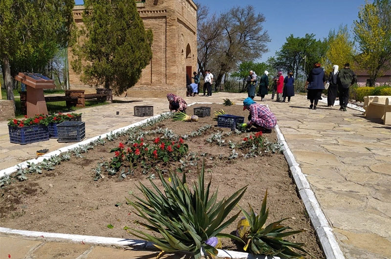 Қазақстан Республикасы Мәдениет және спорт министрлігіне қарасты «Ежелгі Тараз ескерткіштері» мемлекеттік тарихи-мәдени қорық-музейіне қарасты нысаны "Айша бибі" кесенесінің аумағында музей қызметкерлері көгалдандыру жұмыстарын жүргізді. Музей қызметкерлері санитарлық-карантиндік шараларын сақтай отырып, санитарлық тазалау, көгалдандыру жұмыстарын жалғастыруда.
