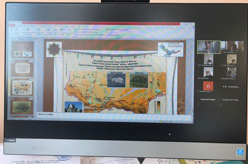 Бүгін «Ежелгі Тараз ескерткіштері» Мемлекеттік тарихи-мәдени қорық-музейі Алматы қаласы, Алатау ауданы №151 жалпы білім беретін мектептің 9 сынып оқушыларына осы мекеменің тарихшысы Ибадильдаева Мадина «Ежелгі Тараз-мәңгіліктің қаласы» тақырыбында онлайн бейнедәріс оқыды. Бейнедәріс барысында екі мың жылдан астам тарихы бар, өткен мен бүгінгі күннің арасын жалғастырушы киелі де қасиетті мекен, мәңгіліктің қаласы, үлкен руханият орталығы, әлемдік өркениеттен ойып орын алатын Ежелгі Тараз қалашығының тарихы және қорық-музейге қарасты 30 тарихи-мәдени нысандардың тарихы мен аңыздары баяндалды. Сонымен қатар, «Жамбыл - менің жәй атым, Халық - менің шын атым»-деп жыр жырлаған Жамбыл Жабаевтың 175 жылдық мерейтойына байланысты ақынның өмірі мен құрметіне салынған ескерткіштің тарихы айтылды.