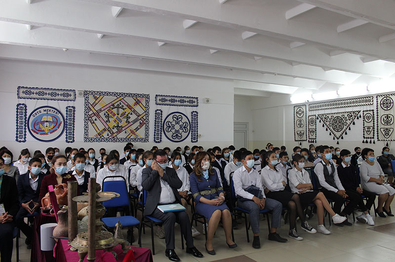 Сонымен қатар Елбасы Н.Ә.Назарбаевтың "Ұлы Даланың жеті қыры" атты қазақ халқының және қазақ даласының мәдениеті мен өркениетін тұтастай бейнелеген мақаласы біздің көрмеге арқау болды. Жәдігерлерді жақыннан көрген ұстаздар мен оқушылар өз таңғалыстарын жасыра алмай, бойларын мақтаныш кернеп, өздеріндегі ұлттық кодтарының оянғандығын айттып, бізді де бір қуантты. Музей - ұрпақтар сабақтасытығын байланыстырушы көпір іспеттес. Әрине біздің міндет бабаларымыздың мұрасын аманат етіп жеткізу, сақтау болып табылады. Іс-шара соңында мектеп басшылығы біріге отырып, облыстың тарихи-мәдени құндылықтарын одан әрмен насихаттау жұмыстарын қоян-қолтық жұмыс жасауды ұсынды. Музей ұжымына алғыс білдіріп, шығармашылық табыс тіледі.
