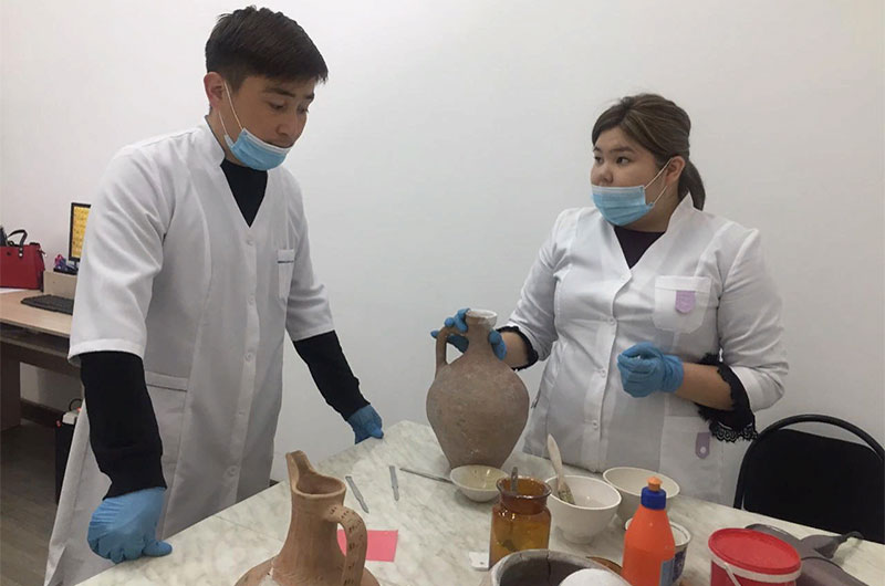 Бүгін, Жамбыл облыстық тарихи-өлкетану музейінің қор бөлімінде,  суретшілер мен қалпына келтірушілер арасында өзара тәжірибе алмасты. Тәжірибе барысында Қазақстан Республикасы Мәдениет және спорт министрлігіне қарасты «Ежелгі Тараз ескерткіштері» мемлекеттік тарихи-мәдени қорық- музейінің қалпына келтірушісі Тұтан Ержан  және Жамбыл облыстық тарихи-өлкетану музейің қалпына келтірушісі Маделиева Жаннұр тәжірбие алмасу мақсатында - құнды жәдігерлерді қалпына келтіру жұмыстары және металдармен қалай жұмыс жүргізілуі жайында өздерінің тәжірибелерімен бөлісті.