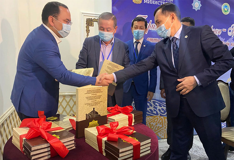 Аталған кітаптың тұсаукесер рәсімін Жамбыл облысы әкімінің орынбасары Кәрібек Дәулет Жамаубайұлы мен Халықаралық Тараз инновациялық институтының проректоры, тарих ғылымдарының докторы, профессор Абдуалы Асқар Бегәділұлына берілді. Бұл кітапта Жамбыл облысының аумағында орналасқан ортағасырлық бес ірі қала - Ақтөбе-Баласағұн, Құлан, Өрнек, Қостөбе, Ақыртас сарай кешені 2014 жылы "Ұлы Жібек жолының Чанъань-Тянь-Шань дәлізі" маршруттар желісінің ескерткіштері ретінде ЮНЕСКО-ның Дүниежүзілік мұра тізіміне енгізілген объектілер туралы толық мәліметтер берілген. Республикалық және жергілікті маңызға ие тарихи-мәдени ескерткіштер жайлы ғылыми-танымдық ақпараттар жинақталған. Конференцияға келген қонақтар мен қатысушыларға кітап сыйға тартылды.
