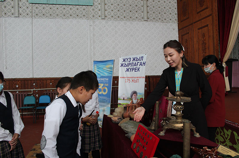 Жылжымалы көрмеде ақынның өмірі мен шығармашылығынан тың мәліметтер айтылып, ақын өмірі туралы бейне материалдар мен археологиялық қазба жұмыстары нәтижесінде табылған құнды жәдігерлерден көрме ұсынылды. Тарих пен мәдениетті байланыстыра отырып, «Рухани жаңғыру» бағдарламасының аясында тарихи-мәдени дәстүрлерді қайта жаңғырту мен дамыту сабақтастығын, еліміздің мәдени мұрасын насихаттау, қолдану, сақтау және зерделеу бүгінгі көрмеге арқау болды. Мектеп ұстаздары мен оқушылары жылжымалы көрмеден алған әсерлерін таңданыспен жеткізе отырып, музей ұжымына алғыс білдірді.